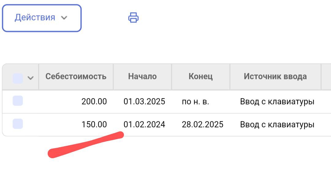 Дату применения себестоимости можно менять, указывая период её действия.