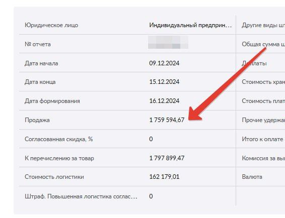 Уточним что Wildberries в детализации данный показатель называется "Продажа" (см. скриншот), хотя по факту эта сумма показывается уже за вычетом возвратов.