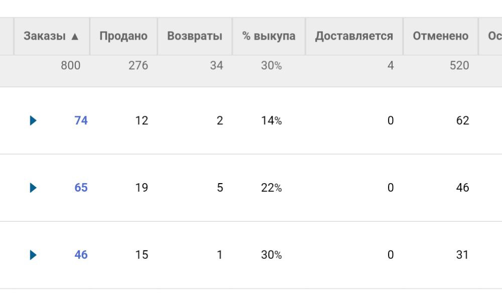 Подобное разделение по статусам заказов позволит увидеть реальную ситуацию, какие заказы уже выкуплены, а по каким все еще можно заработать, т.е после их доставки %выкупа будет больше.