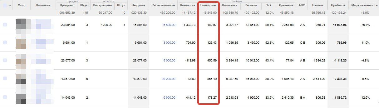 Теперь расходы на эквайринг выведены отдельно от комиссии (ранее эквайринг входил в комиссию).
